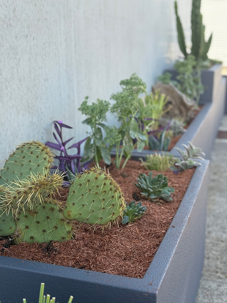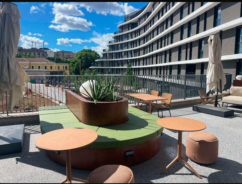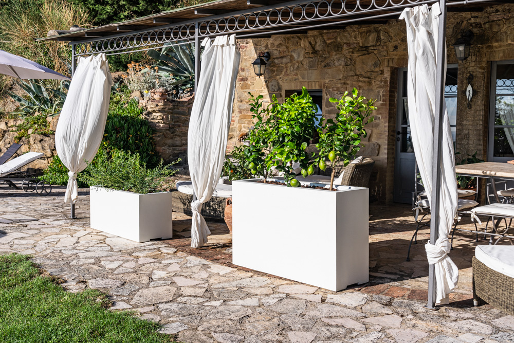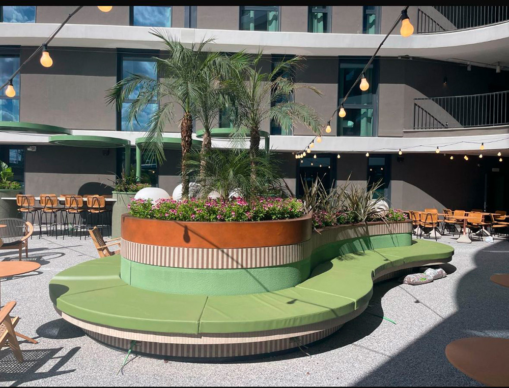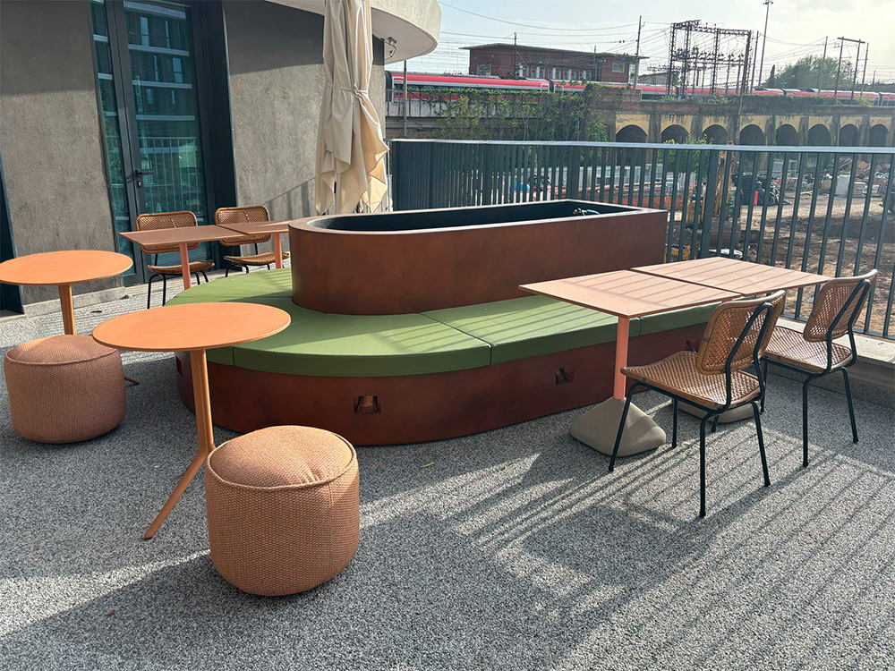 Panchine con fioriere, sedute e tavolini