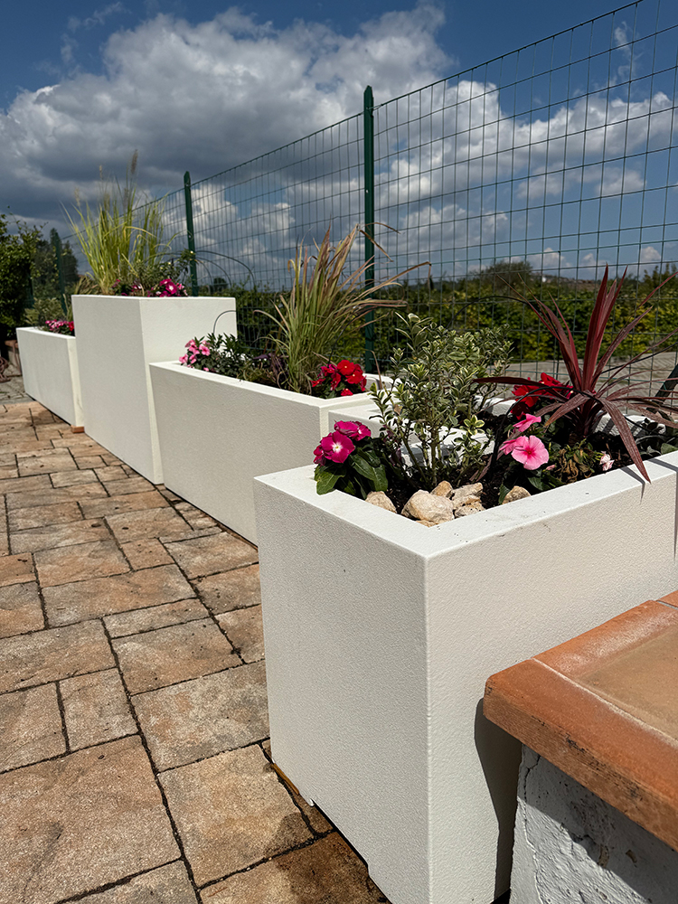 Tutti i nostri prodotti nascono in EPS ad alta densità, resi resistenti e duraturi da resine protettive e colori a base d’acqua, ideali per l’uso esterno.